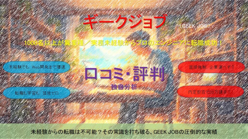 「1000名以上が異業種/実務未経験からプロのエンジニアに転職成功」、の実績を誇るGEEK JOB(ギークジョブ)。プログラミングの学習だけなく、IT業界への就職希望者に... -