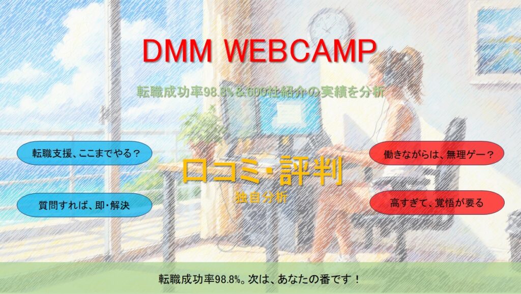 転職成功率98.8%|DMM WEBCAMP口コミ&現役受講者レビュー